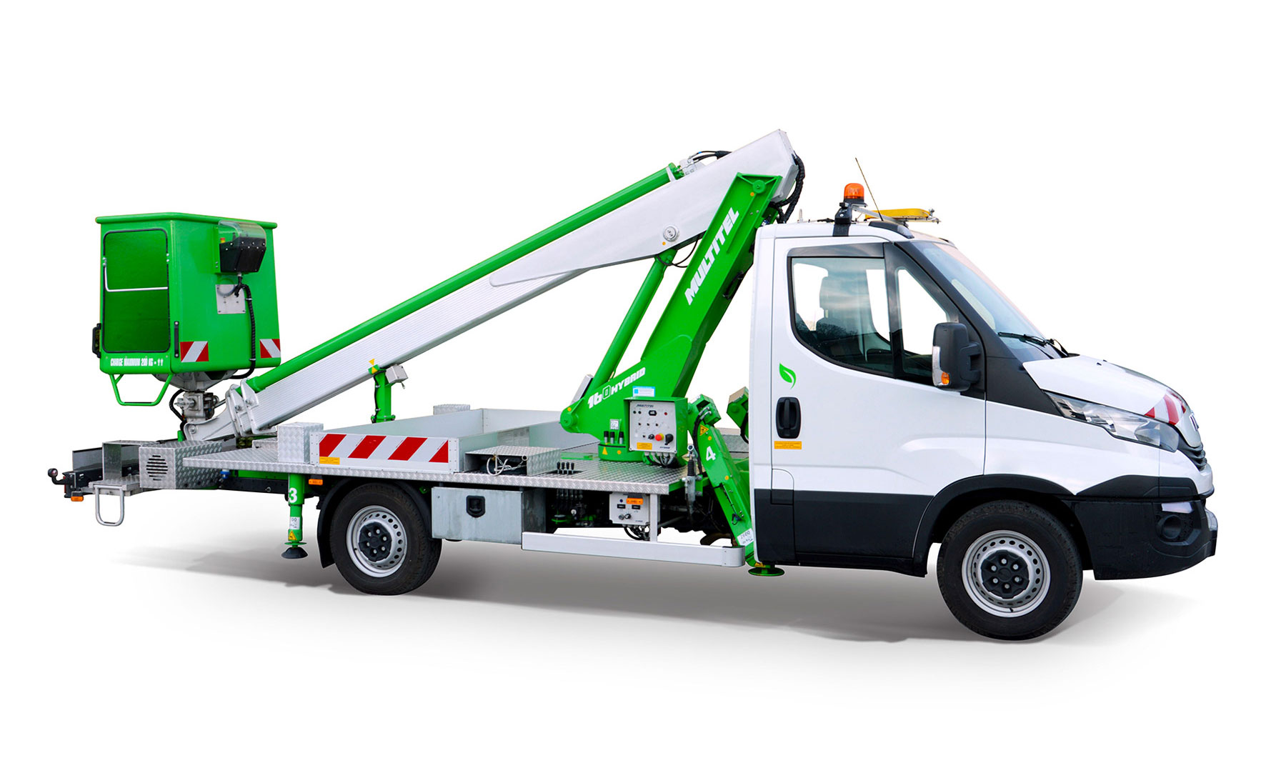 Allestita su autocarro da 3.5 tonnellate, ha un’altezza di lavoro di 16,50 m. Lo sbraccio orizzontale massimo di 10.50 m consente una portata in cesta di 80 kg e di 200 kg con lo sbraccio di 7,80 m.